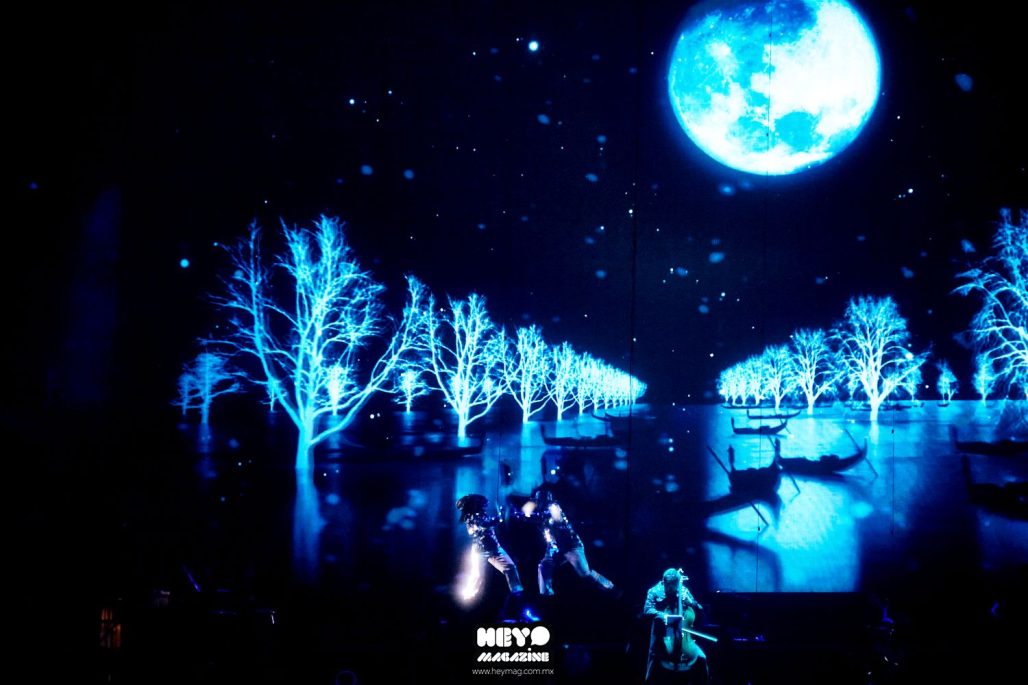Sobre el escenario, la propuesta destacó por su potente concepto visual. Proyecciones en 3D, efectos láser, diseño lumínico de gran formato y elementos de danza contemporánea construyeron una narrativa envolvente que acompañó cada pieza musical, logrando transportar al público a la atmósfera de la Venecia del siglo XVIII.